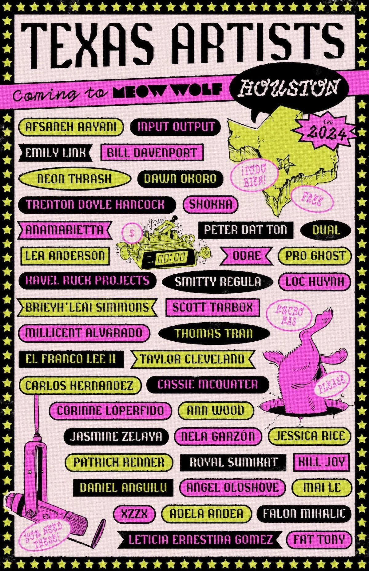 It was a great honor to be selected to aid in the production of the Collaborating Artist Announcement for Meow Wolf’s upcoming Houston location. Harkening to the mysterious storyline of the new location, the design nods to the general essence of the exhibition, while incorporating the esoteric irreverence and maximalism Meow Wolf is known for. Deliverables included social media carousels, emails, flyers, and web headers.