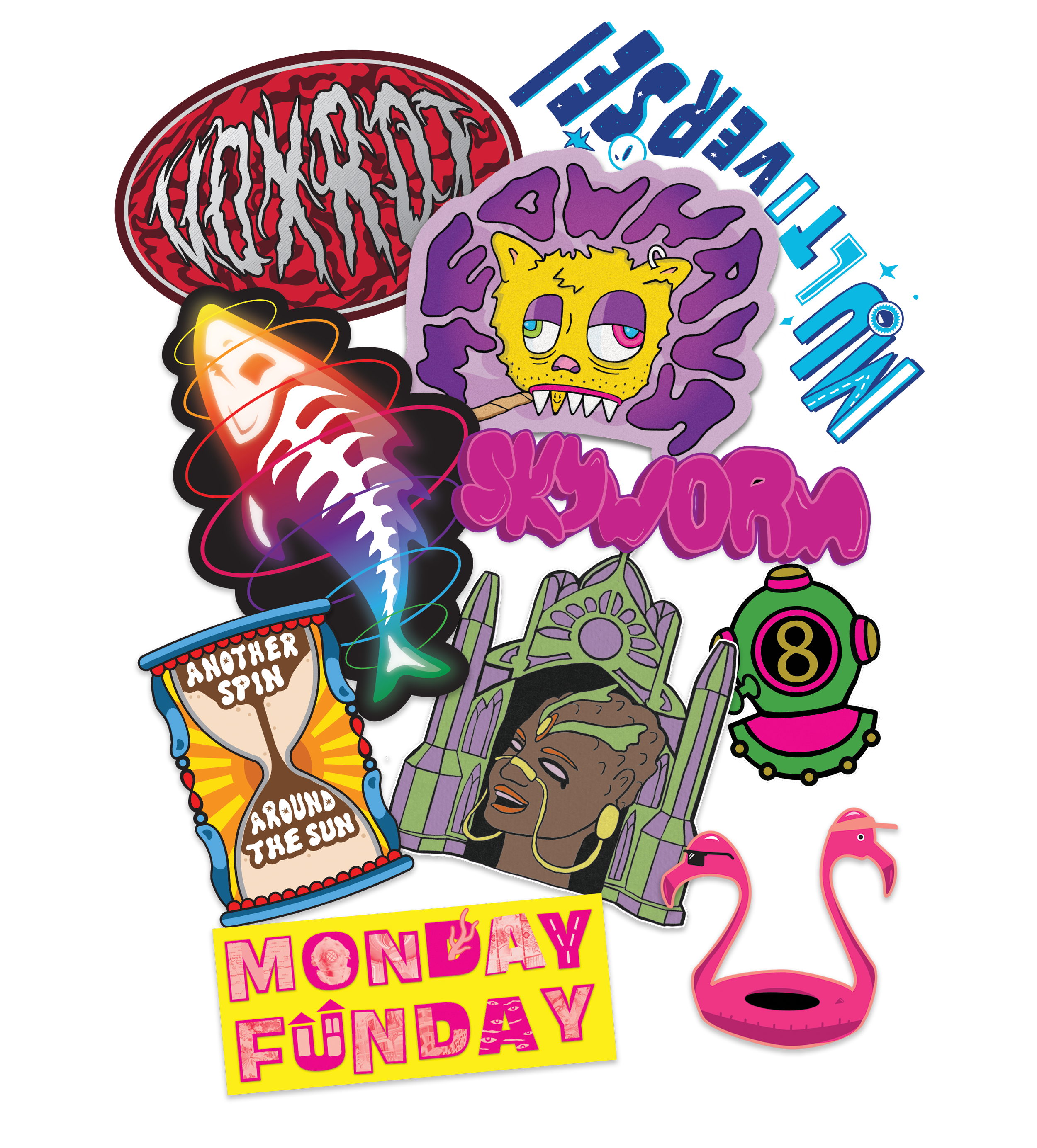 During my time at Meow Wolf, they participated in their second year of the annual hot air balloon festival Balloon Fiesta hosted in Albuquerque, New Mexico. I was on a team of designers in charge of producing the artwork and merchandise for the event. I was tasked with creating the collectors pin, sweatshirt, and mug that became sold out items in the Meow Wolf merch store in their Santa Fe location.